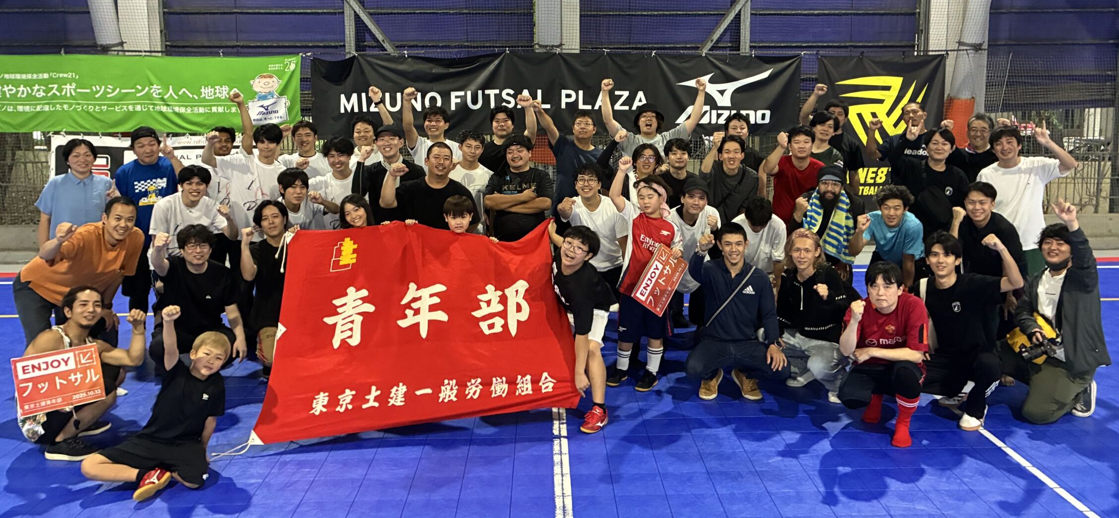 10月12日(日) にミズノフットサルプラザ調布にて、東京土建本部主催「エンジョイ!フットサル&交流会」が開催 され調布支部からは青年部員1人と書記2人が参加しました。多摩東・多摩北ブロックチームとして戦い、見事リー グ優勝を果たし、美味しいお酒や料理に舌鼓を打ちながら他支部の仲間と交流を深めました。参加者からは「参加し てよかった」「また参加したい」「久しぶりのスポーツレクレーションだったが盛り上がってよかった」といったポ ジテブな声が聞こえました。これからもより多くの仲間を巻き込み、若手から建設業を盛り上げていきます。スライドショーをお楽しみください。☞☞ 本部青年部エンジョイ!フットサル&交流会 (1分7秒) ダウンロードしてください
