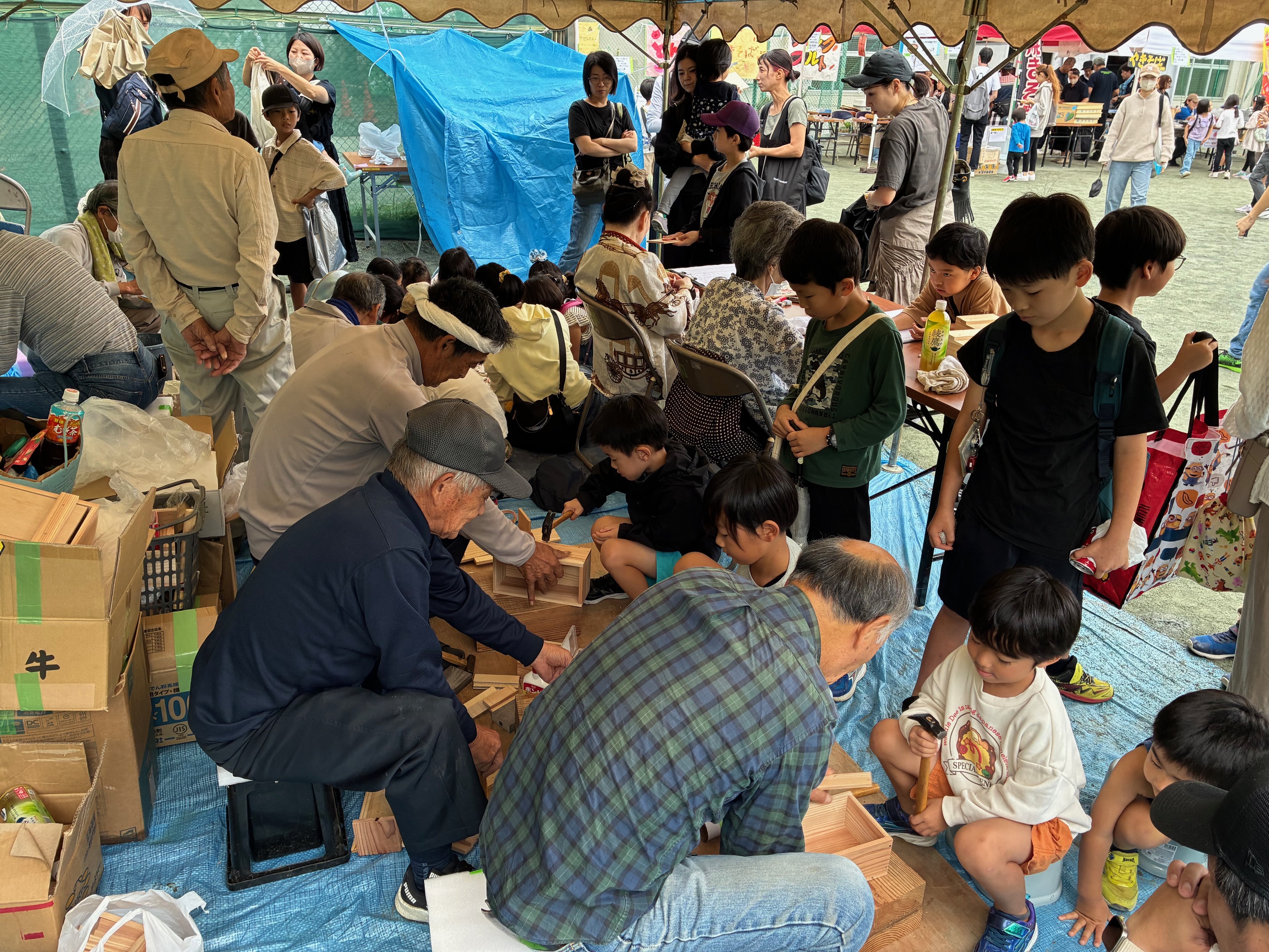 2025.11.29 仕事対策部 10月19日(日) 緑ヶ丘児童館まつり 10月19日(日) 緑ヶ丘児童館まつりに参加しました。途中小雨にあいましたがのちにテントも乾くぐらいの風が吹き 何とか一日を楽しく過ごせました。たくさんの児童が来場して「大工道具入れ風小物入れ」47個、モザイクタイル65枚 が出来ました。お疲れさまでした。